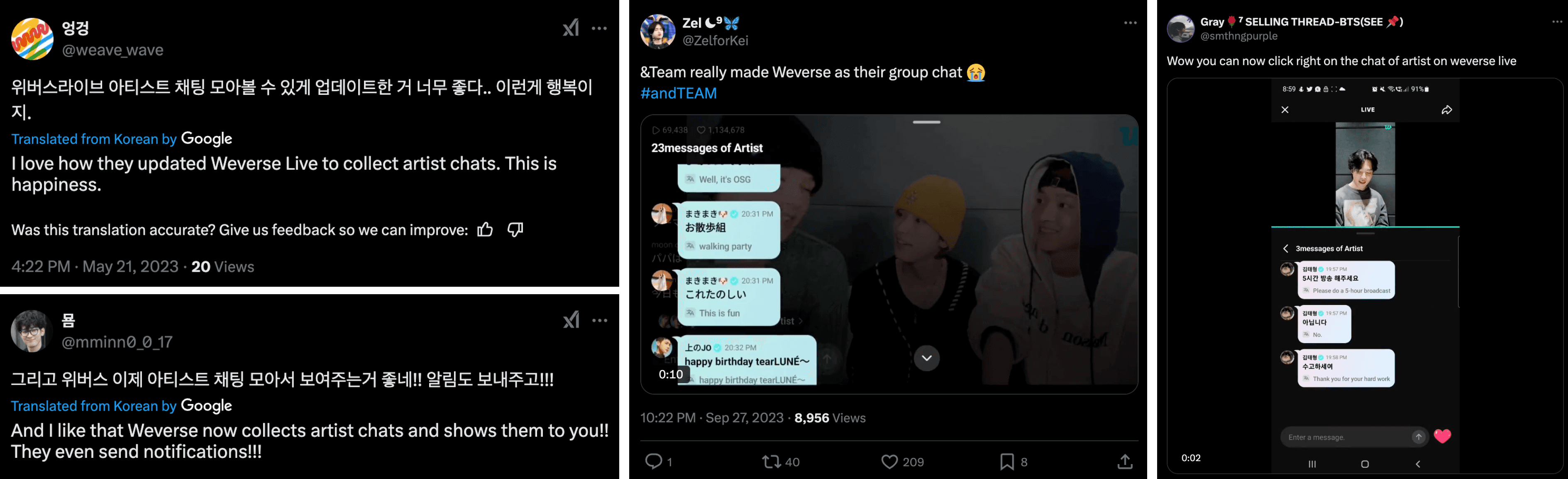 The update received overwhelmingly positive feedback on social media (Twitter/X) and became Weverse’s of of the most-discussed features in 2023.